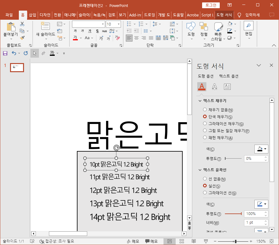 주의!! PPT에서 맑은고딕 "텍스트 윤곽선"을 적용하면 PDF변환 시 텍스트 검색 안됨