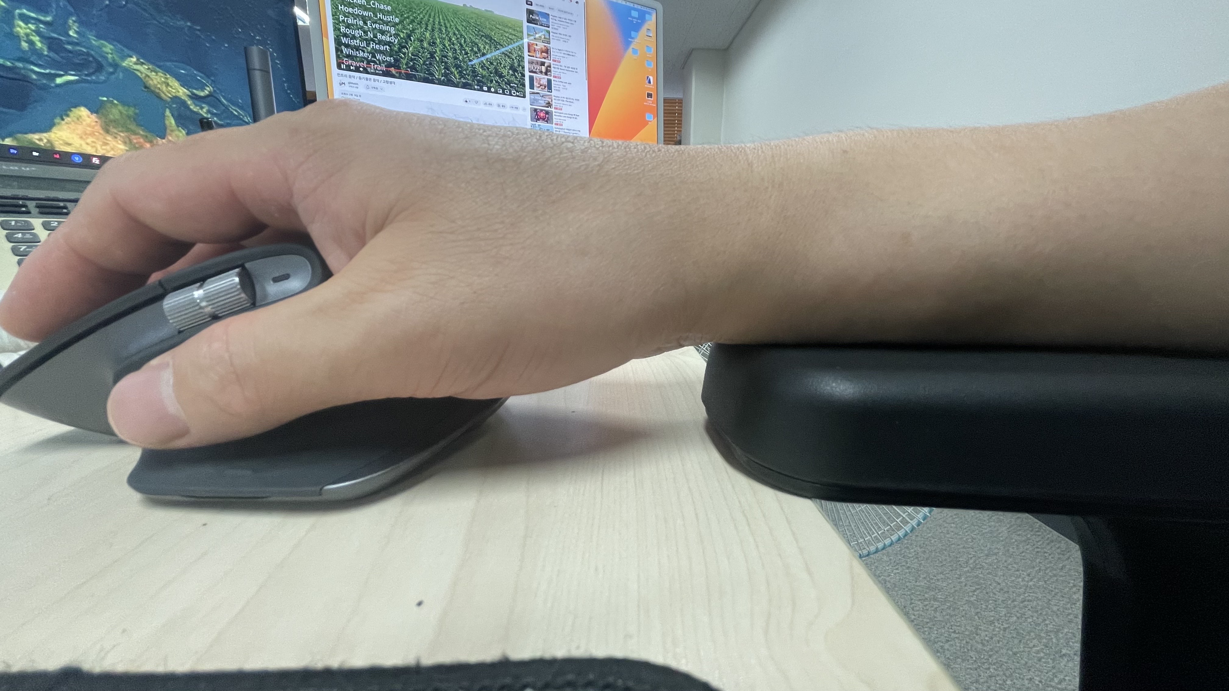 MX Master 3S와 팔걸이 > 손바닥이 닿지 않는다. 손목에 무리가 가지 않는다.