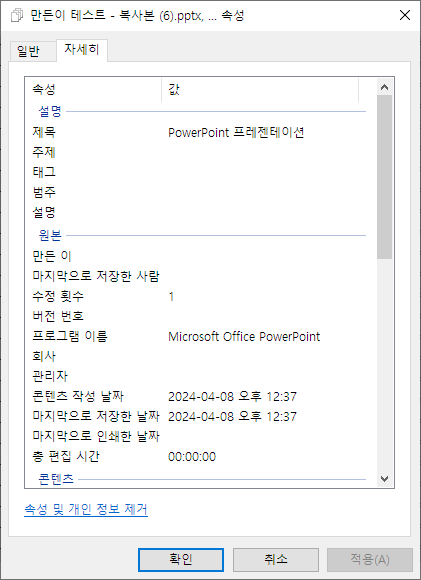 회사에서 문서를 정리하다 보면 파일 속성에 작성자(만든이) 이름이 뜨게 됩니다.