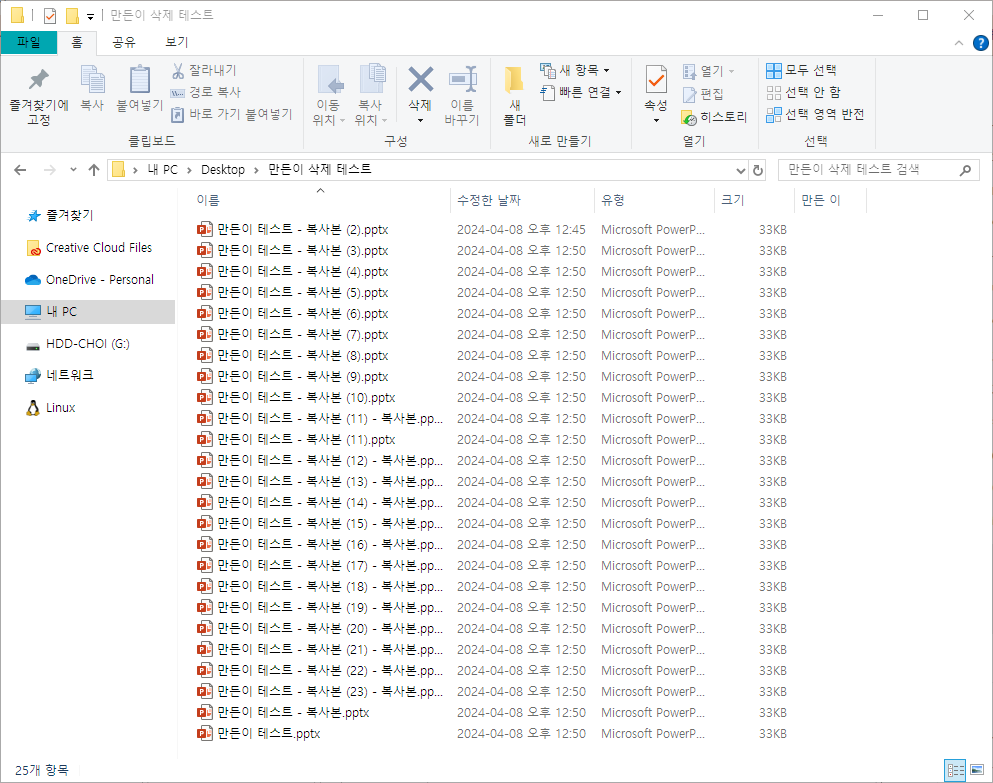 여러파일 만든 이(작성자) 한번에 삭제하기