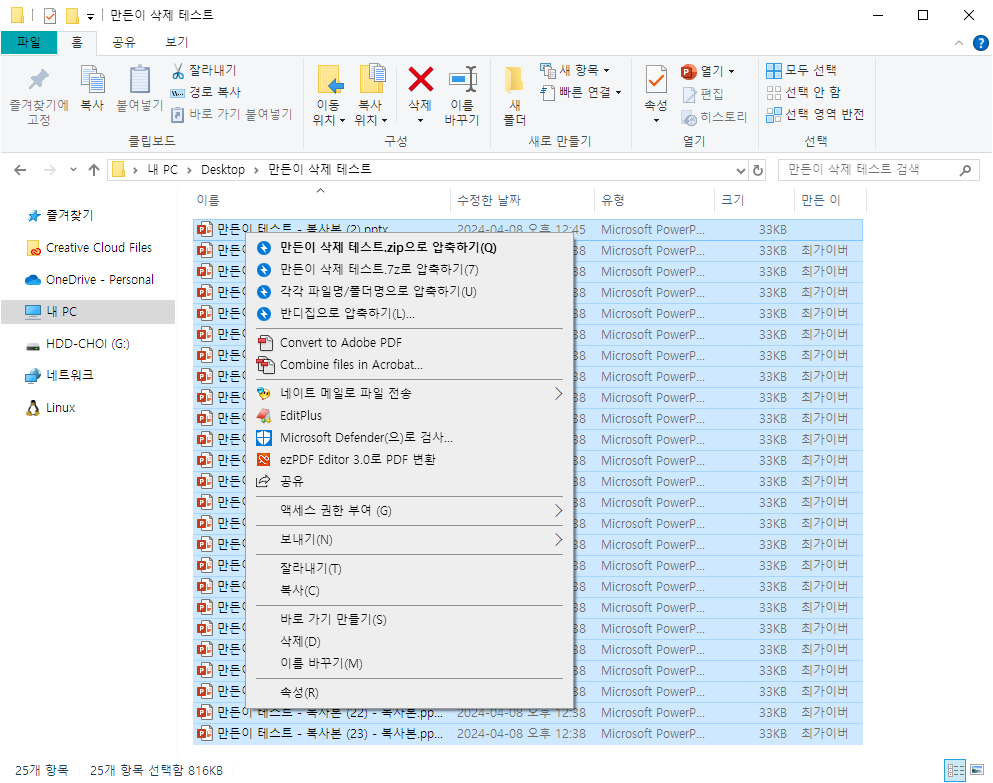 그리고 복수 파일 선택해서도 똑같이 지울 수 있습니다. 만약 만든 이 클릭했을때 활성화 안된다면 아래 내용 참고하세요.