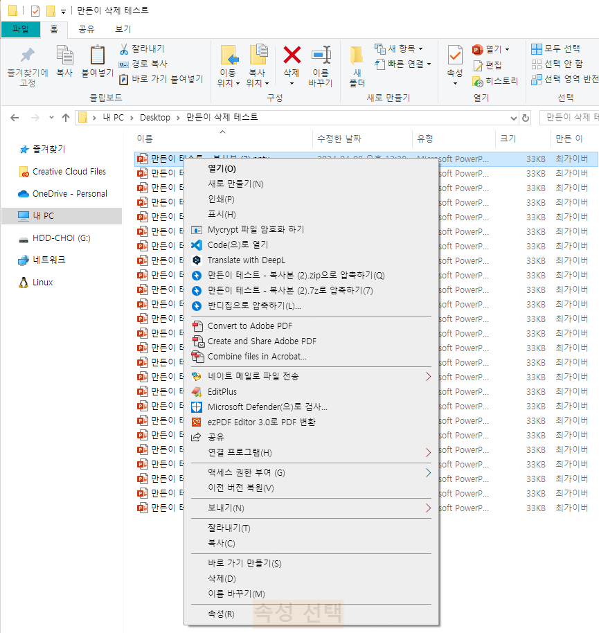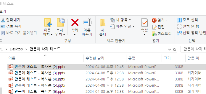 그리고 복수 파일 선택해서도 똑같이 지울 수 있습니다. 만약 만든 이 클릭했을때 활성화 안된다면 아래 내용 참고하세요.