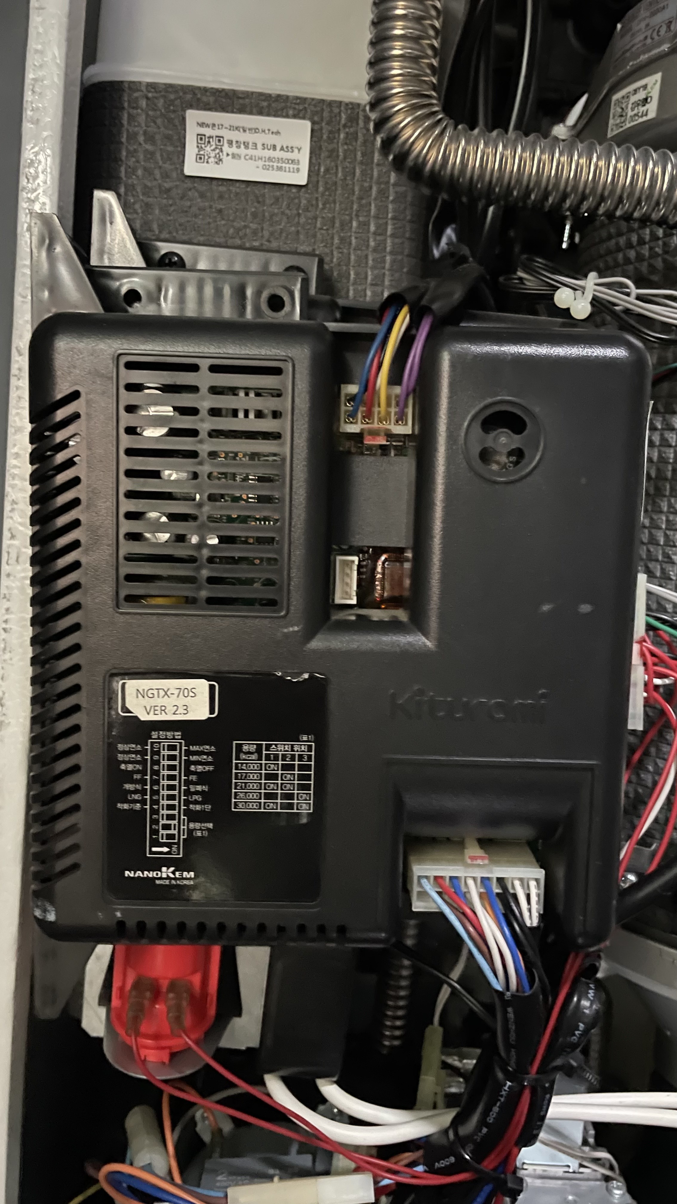 매뉴얼을 보니까 설치된 제품 외에 여러 제품이 컨트롤러 NGTX-70S를 쓴다고 되어 있어서 중고 제품을 찾기 시작해서 우여곡절 끝에 찾아서 연락해 보니 조절기 액정 화면 왔다 갔다 하는 문제는 100% 컨트롤러 고장이라고 바로 얘기하셔서 구입했고, 보일러를 뜯어보니 으잉!! NGTX-70SE 여서 ㅠㅠ