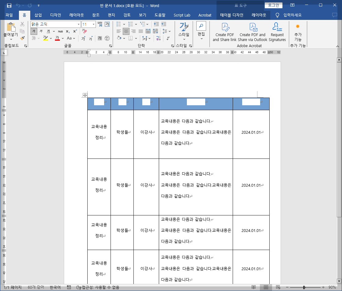 자 이제 정상처럼 보입니다. 물론 여기서 페이지 좌우 여백도 설정은 해야 합니다.