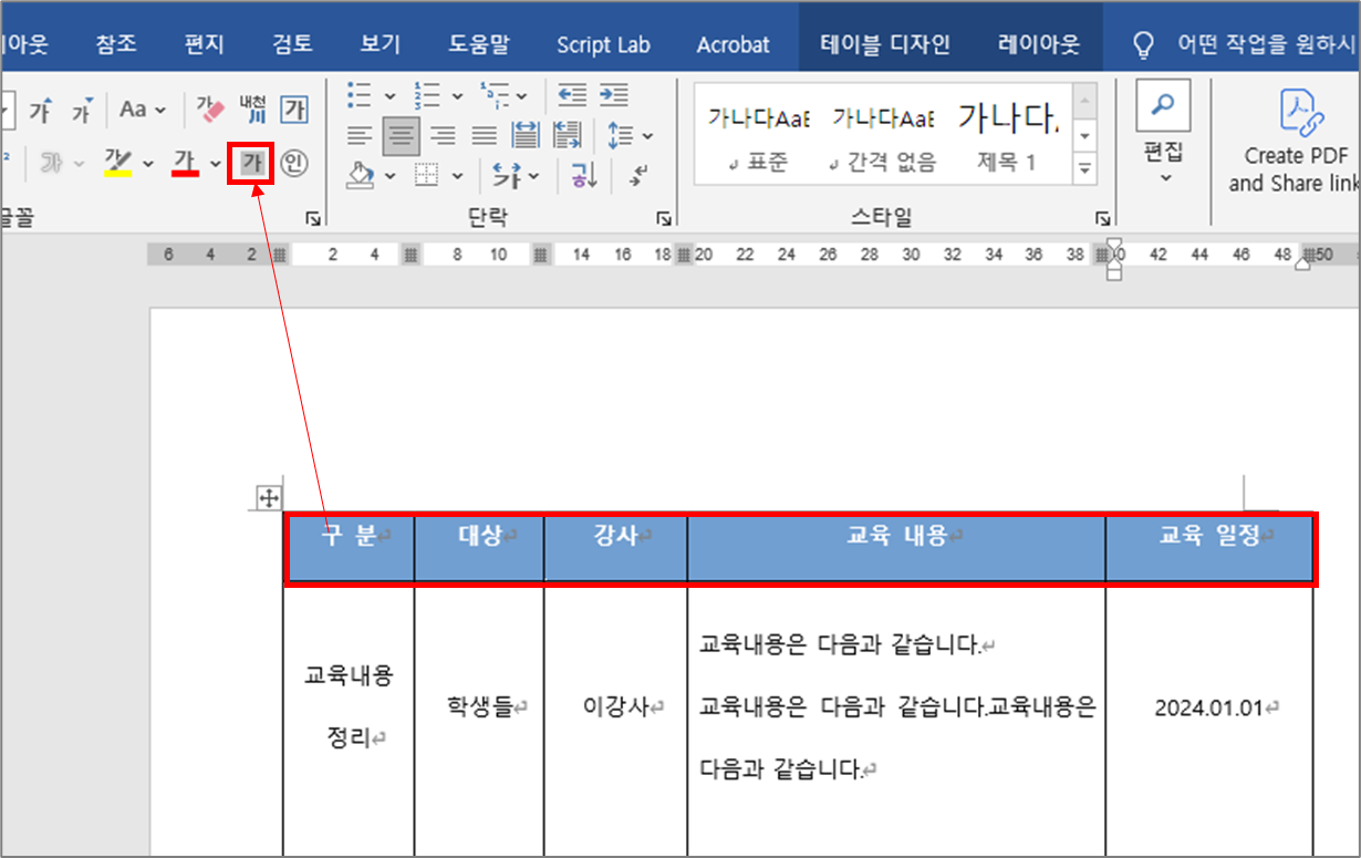 여기서 부분적으로 해도 되고 표를 선택해도 됩니다.