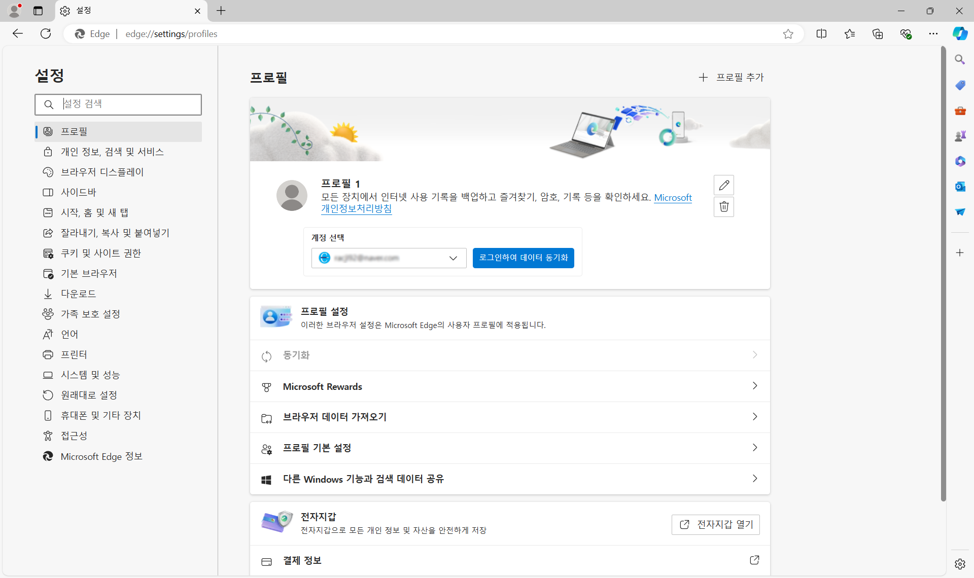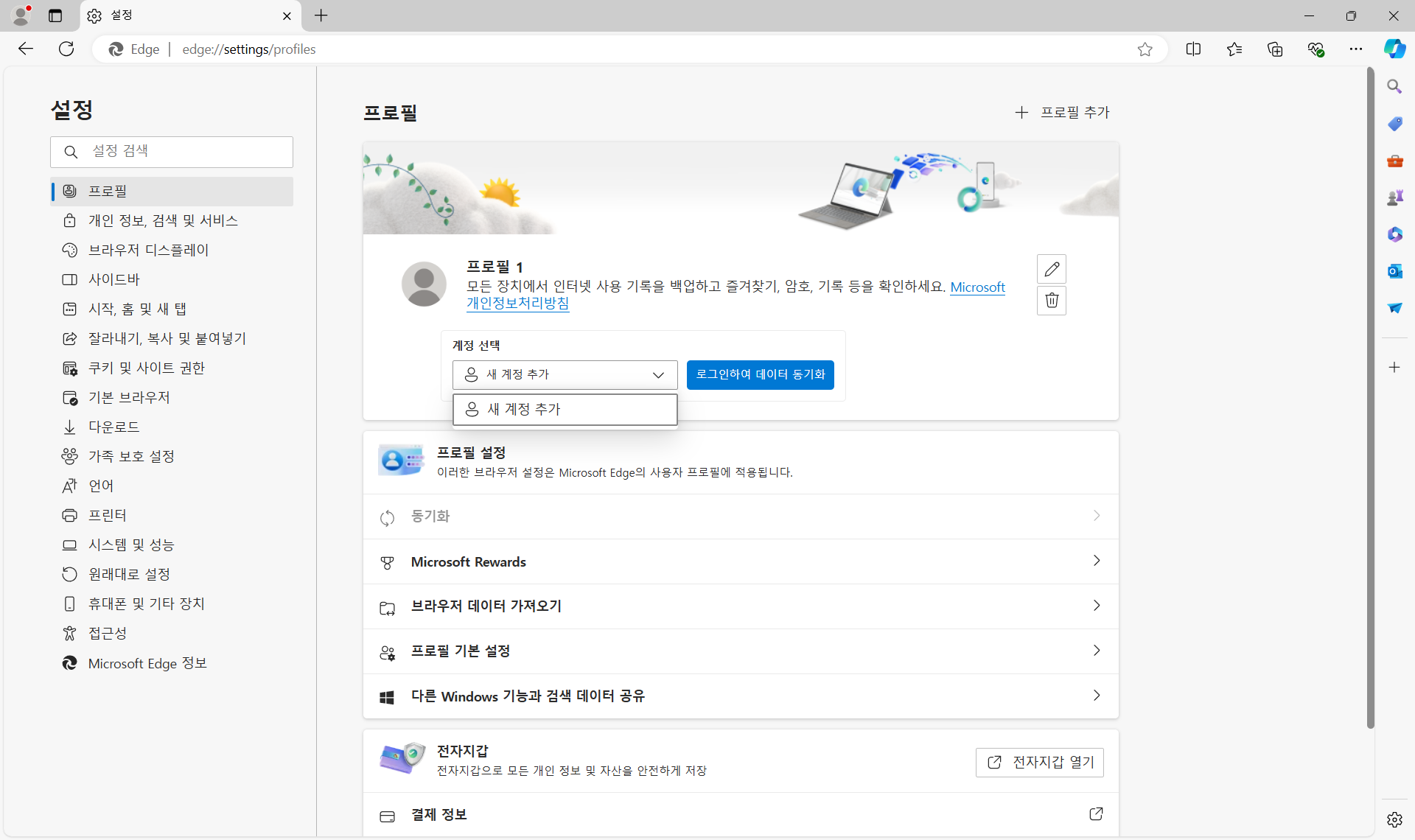 이렇게 되면 엣지 "설정"에서 프로필을 보면 계정이 사라져 있는 것을 볼 수 있습니다.