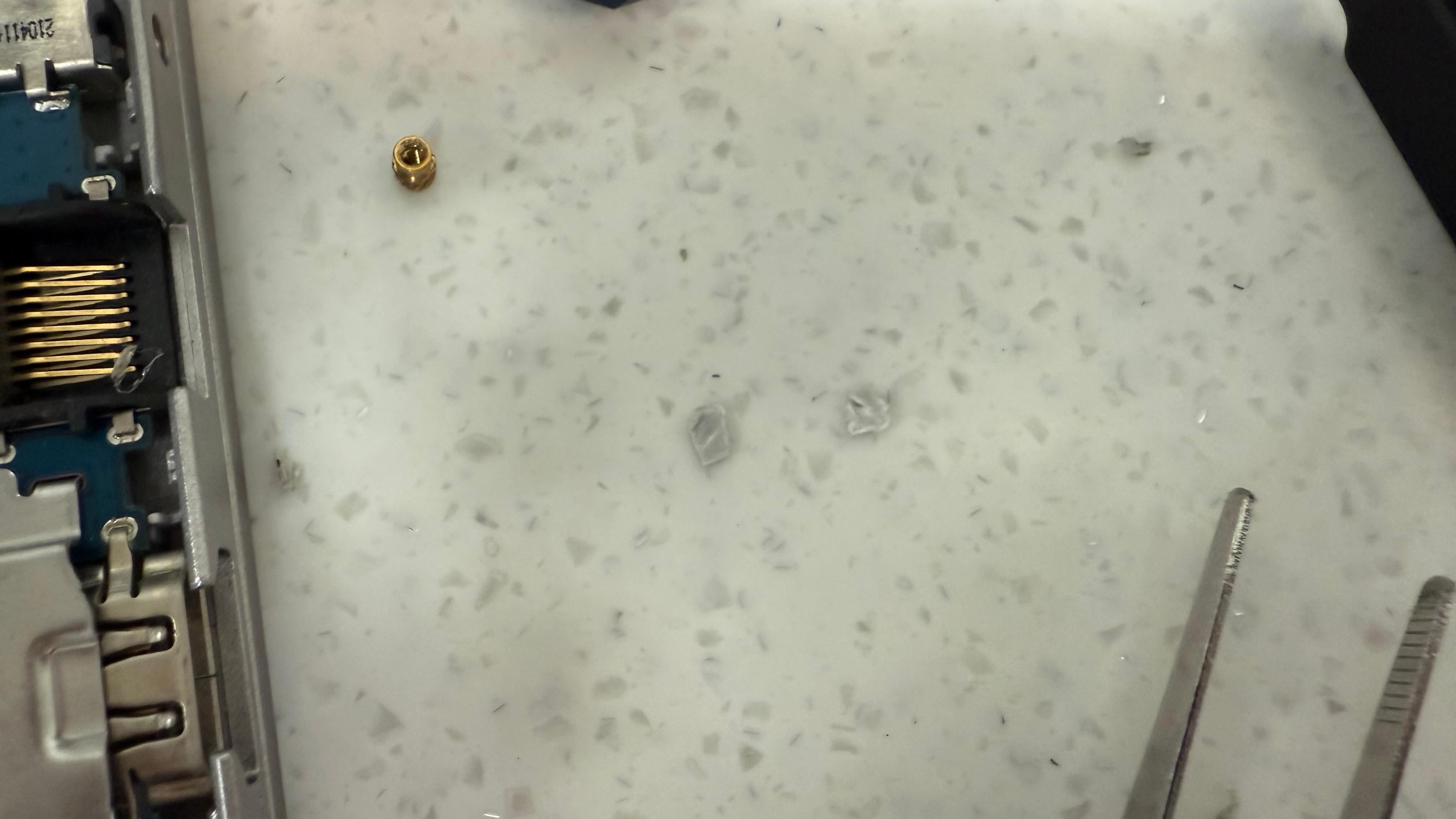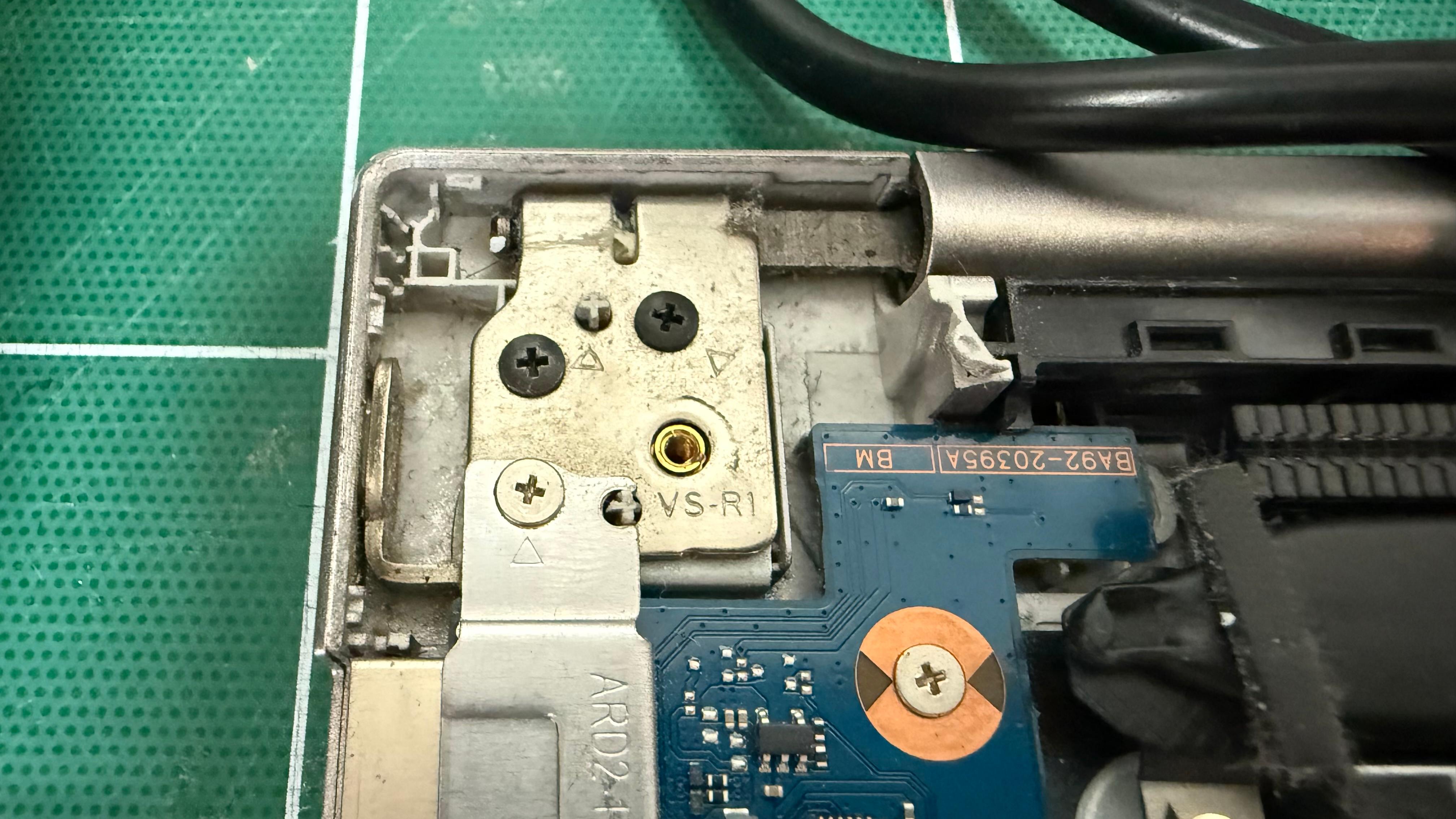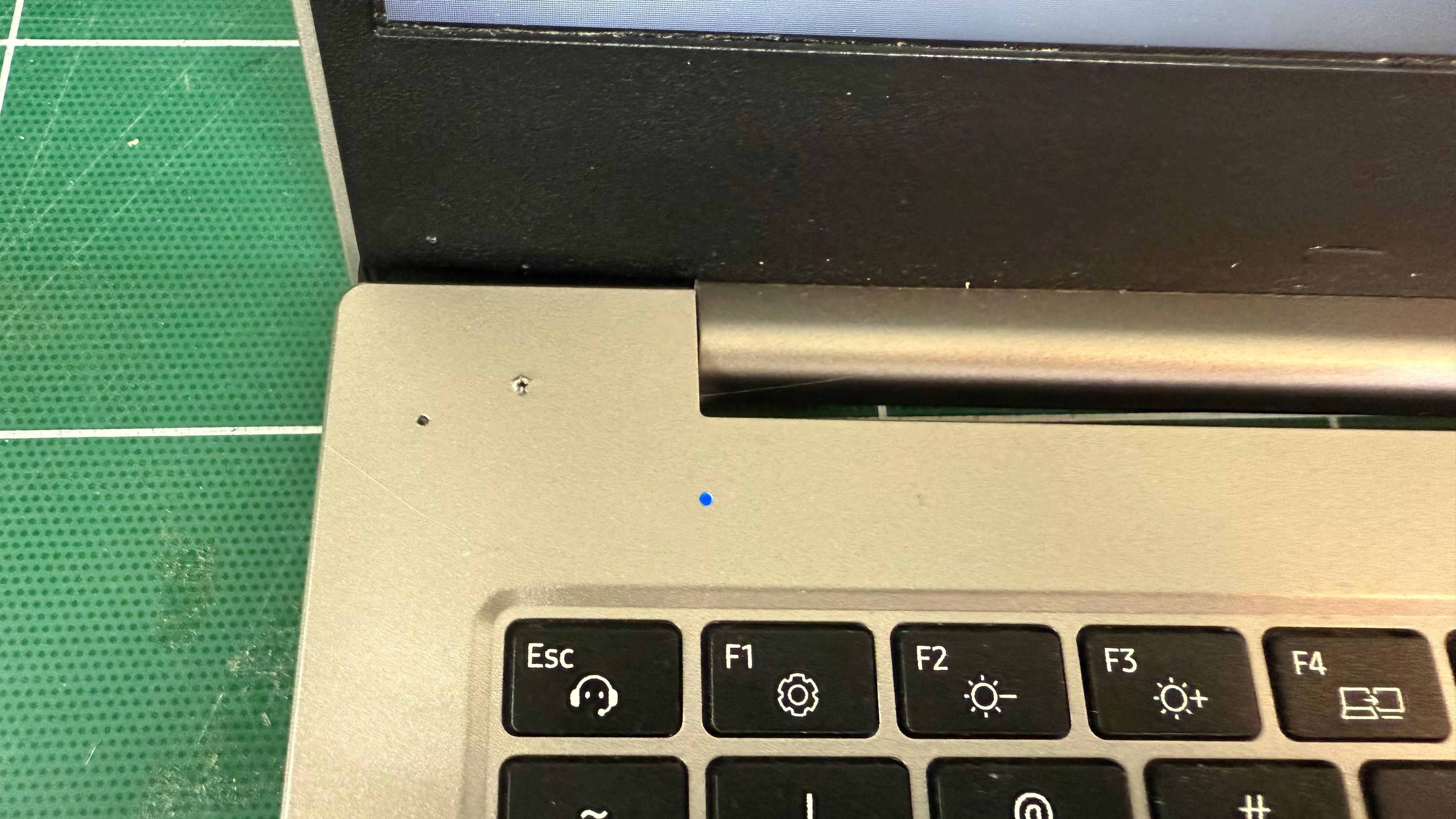 아무리 봐도 떨어진것 같고, 자세히 보니 힌지 나사가 보드 앞쪽까지 밀어 붙인 흔적이 있었다.