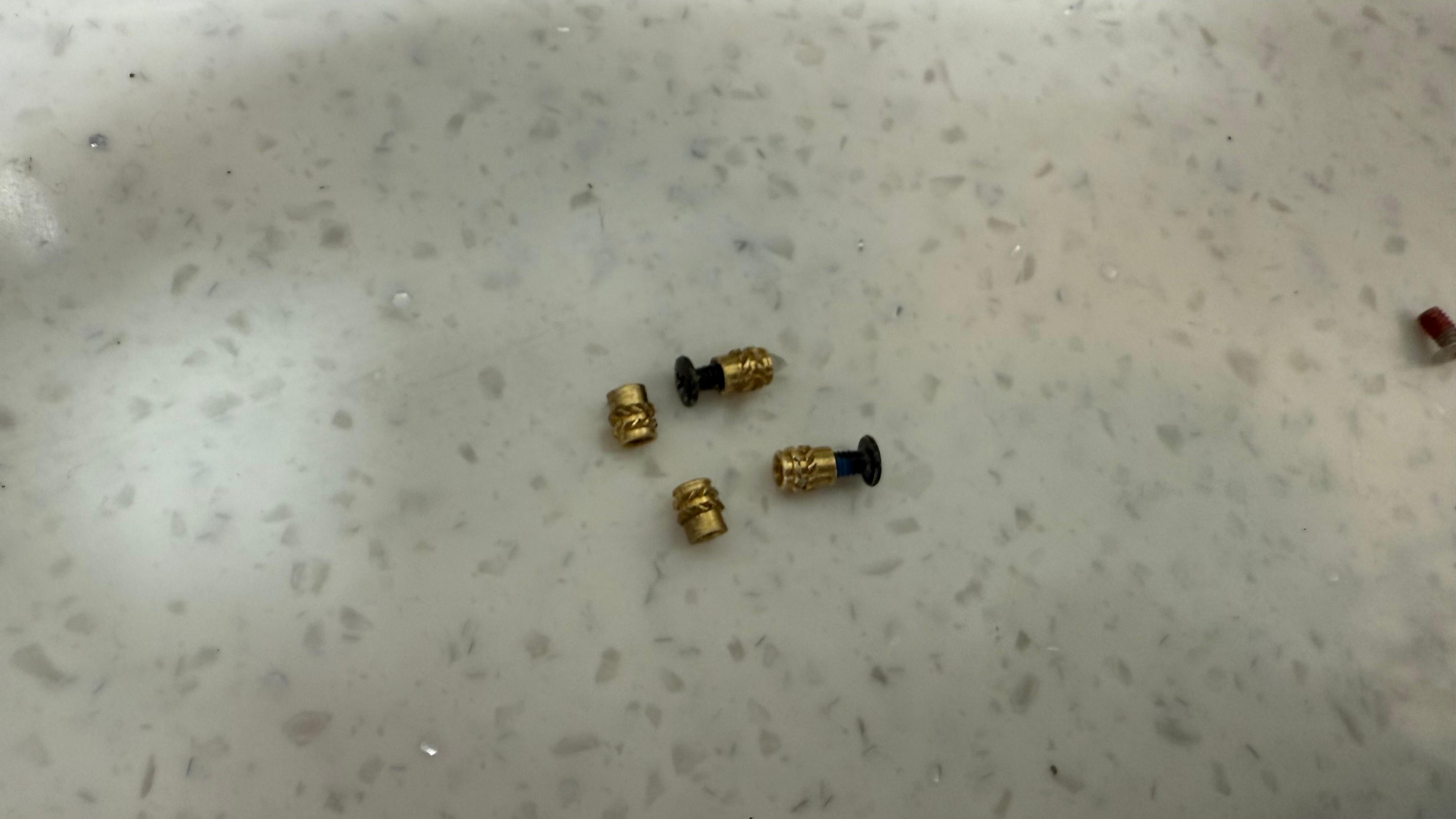 내가 작업하고 나서는 다음과 같이 보인다. 약간 삐뚤하다. 그래도 나사는 들어가나 너무 짧아서 모아 놓았던 조금 더 긴 나사를 사용했다. 제대로 하려면 윗쪽 사진처럼 나사산이 딱 보이게 작업해야 한다.