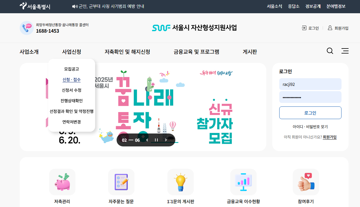 『2025년 서울시 꿈나래통장』 신규 참가자를 모집합니다.