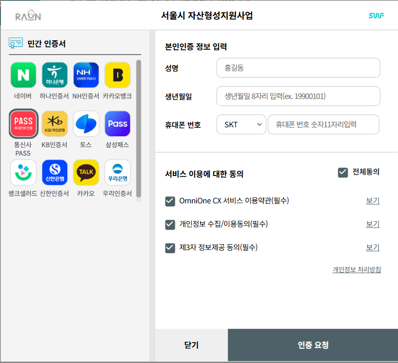 하고 간편인증(카카오, PASS등~) 인증을 먼저 합니다.