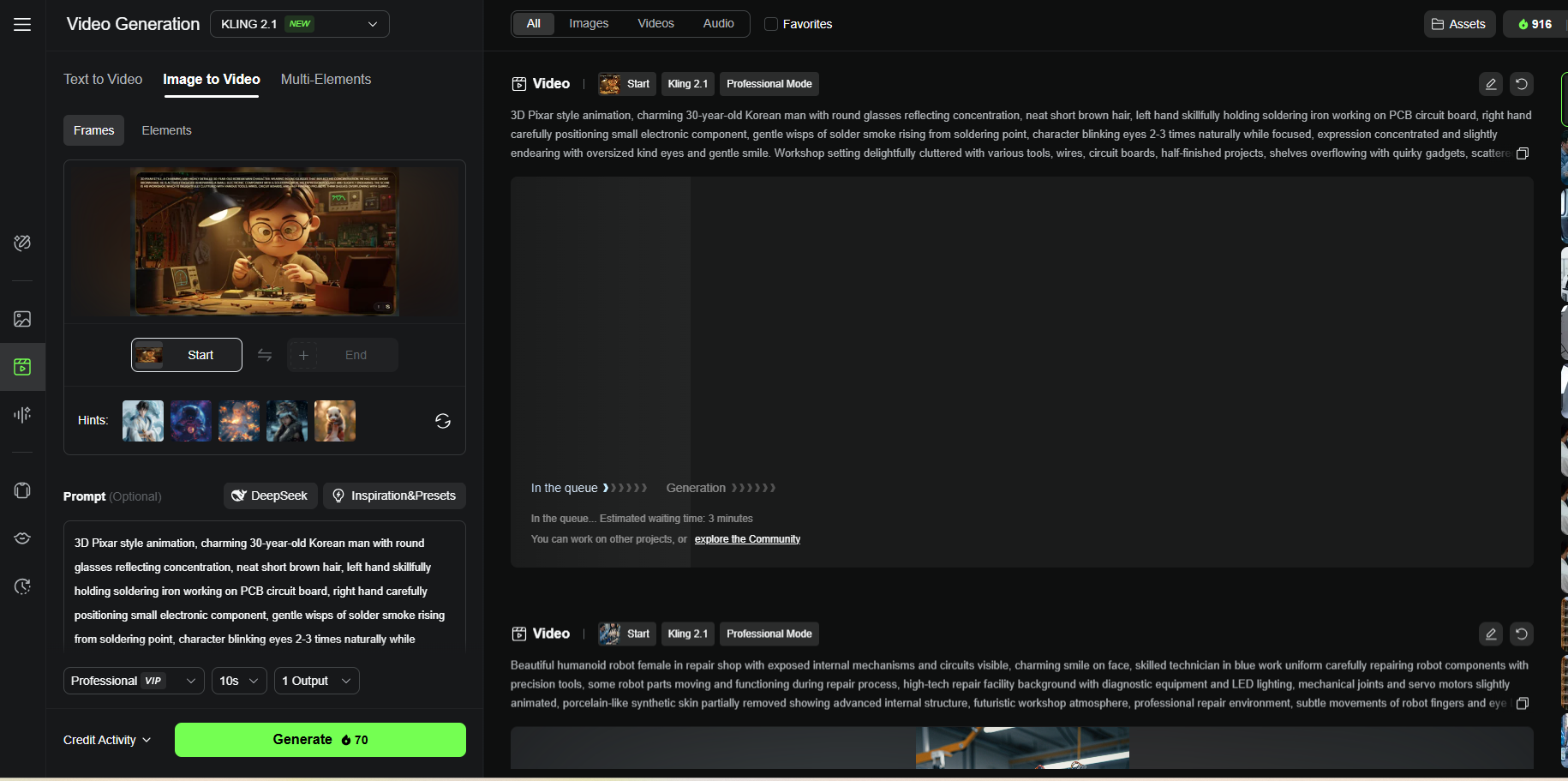 똑같은 프롬프트를 클링에서도 해보고 다른데서도 해봤는데 여기가 최고인거 같아요. 그리고 퀄리티 진짜 좋아요.