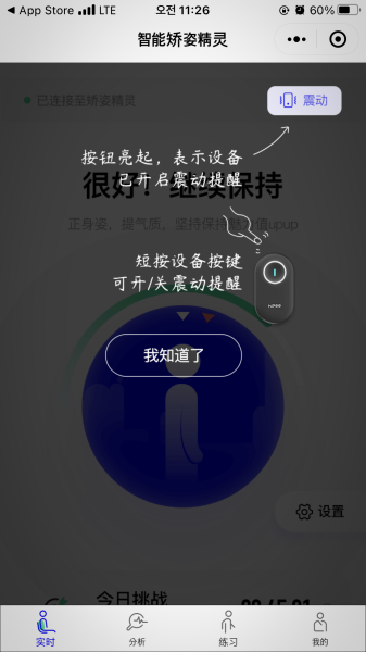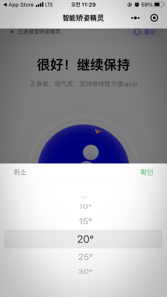 각도 조절, 몇 초 후에 진동할지 선택