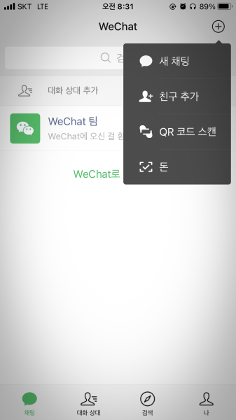 미리 먼저 위챗을 깐다.(WeChat)