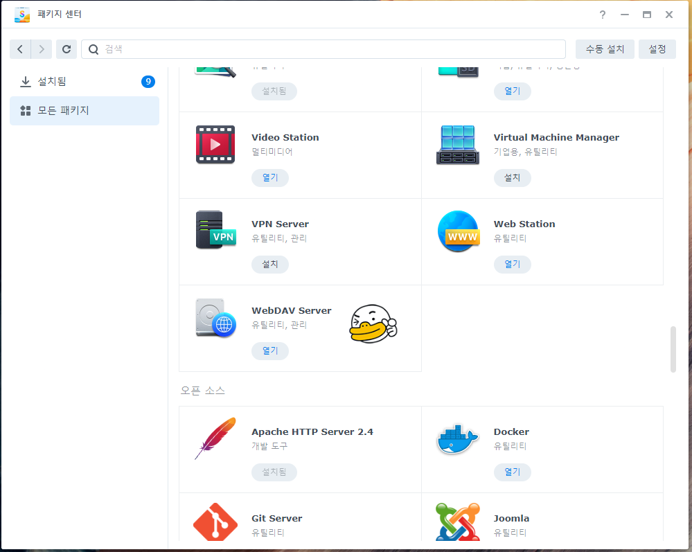 일단 웹로그인 해서 바탕화면에 패키지 센터를 선택한다.