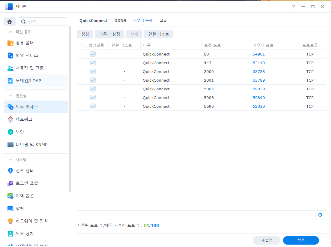 그리고 외부에서 접속을 쉽게 하기 위해서 QuickConnect 도 설정하면 좋다.