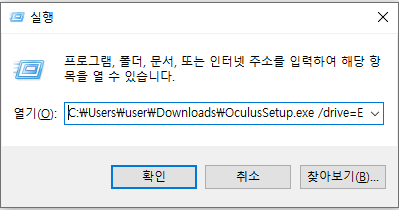 윈도키 + R 누르면 실행 창 뜨는데 이때 붙여넣기 하고 끝에 한칸 띄워서 /drive=E 라고 입력한다.