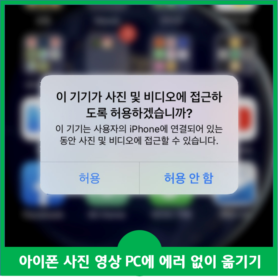 아이폰을 PC에 연결하여 영상이나 사진을 다운로드하려고 하면 중간에 에러가 난다. 아이폰에서 설정 하나만 해주면 끝난다.
